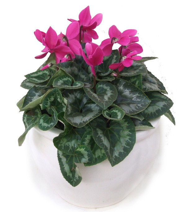 עציץ רקפת שתולה בכלי מקרמיקה דקורטיבית